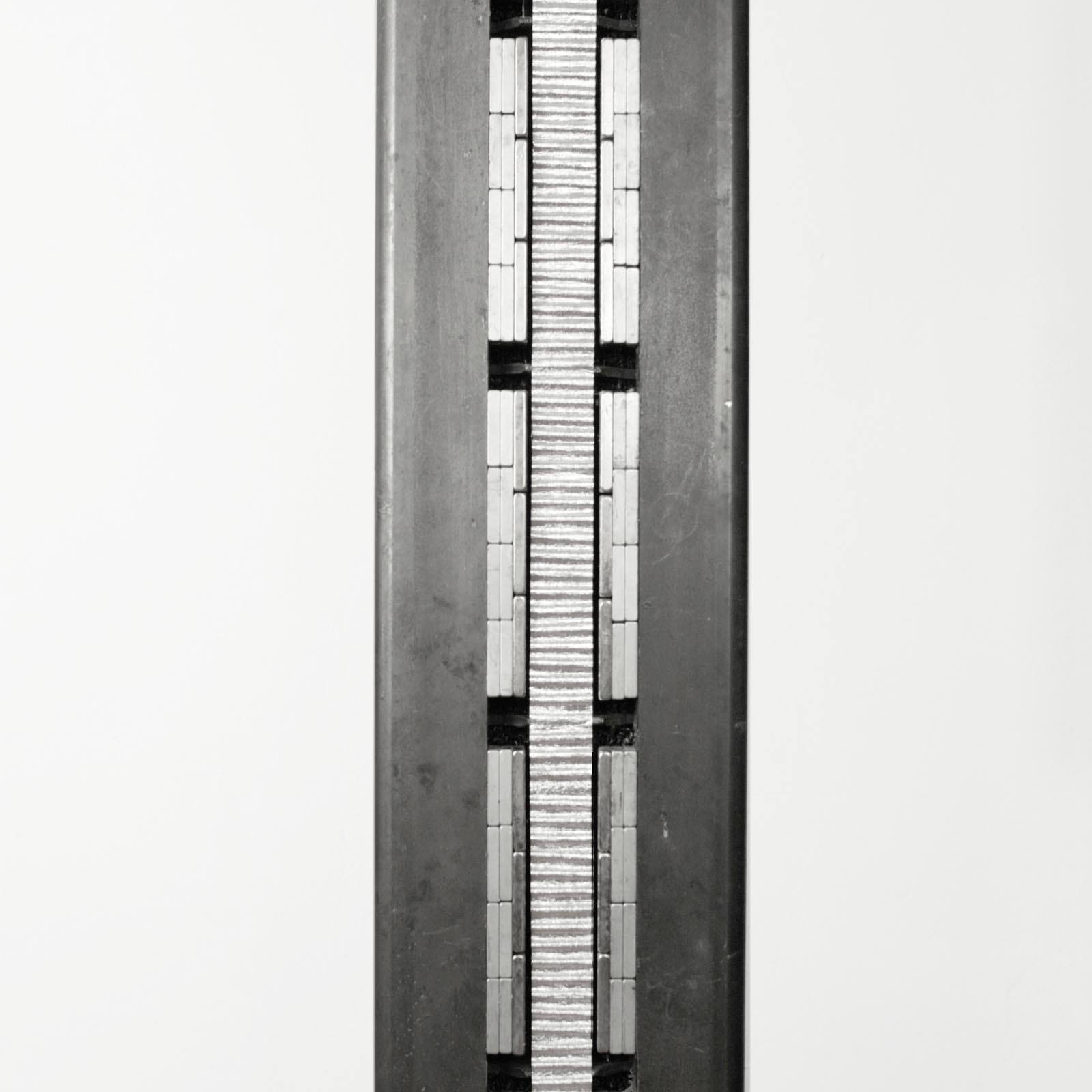 The upper part of the speaker is made of a pipe of structural steel. Together with strong neodymium magnets on both sides of the gap it forms a huge horse shoe magnet. Electrical signals applied to the Ribbon are directly translated into movements and soundwaves, without any further electrical or mechanical transformation. The sound is characterized by very low harmonic distortion, the absence of acoustic phase shifts and excellent transient response, and offers a stress-free and highly immersive listening experience -> continue reading -> R2-Speaker |