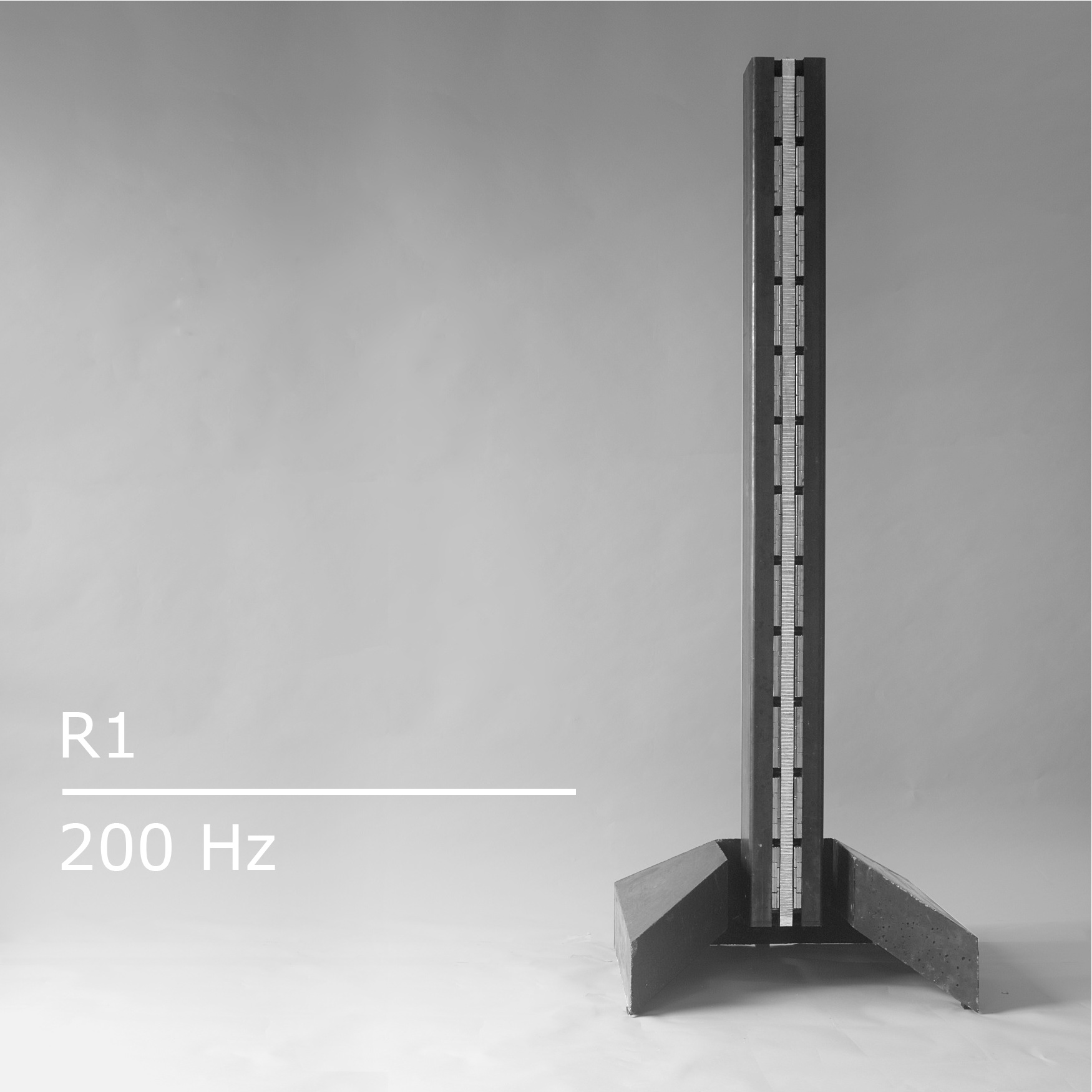 R1 is a foor-standing active speaker system with a height of 1,80 m and a weight of about 80 kg. The upper part is an acoustic linesource and covers the frequency range from 200 Hz to the upper limit of hearing. The base contains three bass speakers to match the lower registers. The idea of this type of speaker defined the need for a durable and mechanically highly resilient membrane material. It thus became the starting point for the development of our technology. |